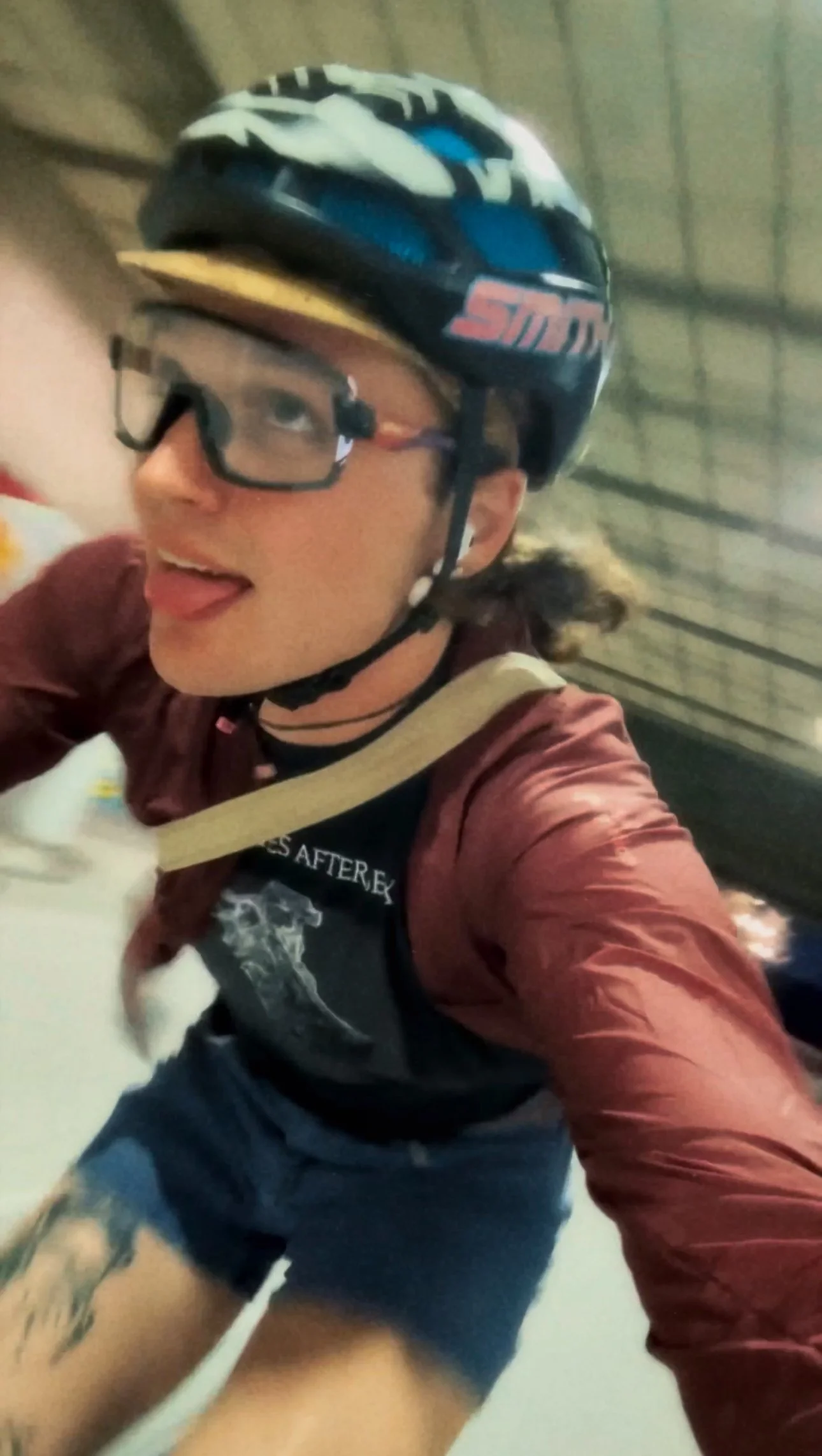 thank you @timbowoodro and @devin___mitchell for collaborating on my new helmet! i loved the flashy character of the previous zebra stripes and wanted something cutom, so i hit up the artists! they did not disappoint! tim on the paint, devin on the lettering.